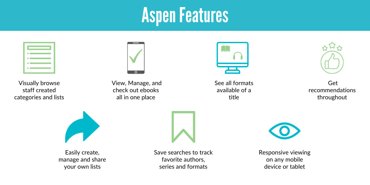 Our library catalog got an upgrade to bring you a better online browsing experience! Say hello to Aspen Discovery! You can now search for physical books, ebooks, digital audiobooks, and more all in one search interface.